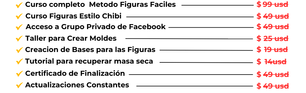 Estoy ofreciéndote dos cursos al precio de uno. Además del curso de estilo Anime, recibirás de regalo el curso completo de figuras estilo Chibi. Ampliando así tu variedad de figuras creadas